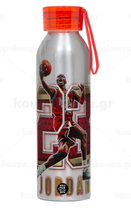 Jordan 23, Αλουμινένιο Αθλητικό Μπουκάλι 650ml – Ασημί με Κόκκινο Καπάκι και Λουράκι Σιλικόνης