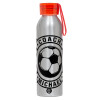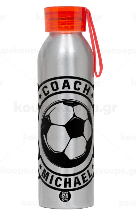 Soccer coach, Αλουμινένιο Αθλητικό Μπουκάλι 650ml – Ασημί με Κόκκινο Καπάκι και Λουράκι Σιλικόνης