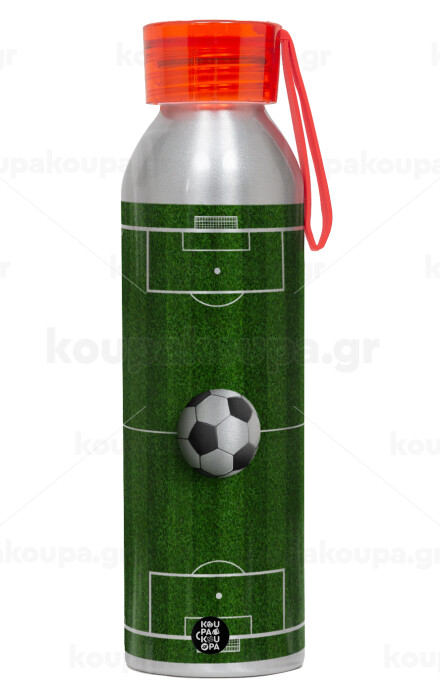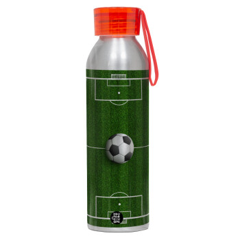 Soccer field, Γήπεδο ποδοσφαίρου, Αλουμινένιο Αθλητικό Μπουκάλι 650ml – Ασημί με Κόκκινο Καπάκι και Λουράκι Σιλικόνης