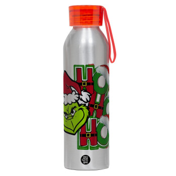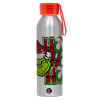 Grinch ho ho ho, Αλουμινένιο Αθλητικό Μπουκάλι 650ml – Ασημί με Κόκκινο Καπάκι και Λουράκι Σιλικόνης