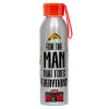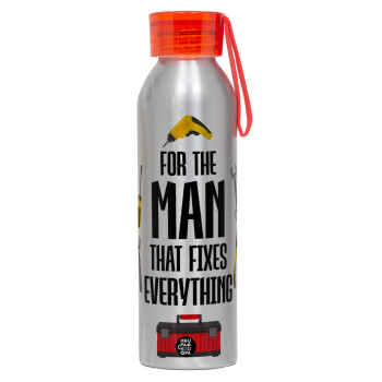 For the man that fixes everything!, Αλουμινένιο Αθλητικό Μπουκάλι 650ml – Ασημί με Κόκκινο Καπάκι και Λουράκι Σιλικόνης