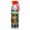Yoda Best Dad, Αλουμινένιο Αθλητικό Μπουκάλι 650ml – Ασημί με Κόκκινο Καπάκι και Λουράκι Σιλικόνης