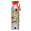 Daisies flower, Αλουμινένιο Αθλητικό Μπουκάλι 650ml – Ασημί με Κόκκινο Καπάκι και Λουράκι Σιλικόνης