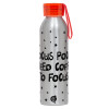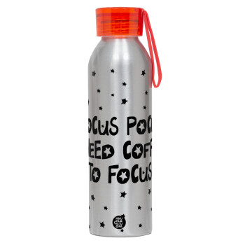Hocus pocus i need coffee to focus - halloween, Αλουμινένιο Αθλητικό Μπουκάλι 650ml – Ασημί με Κόκκινο Καπάκι και Λουράκι Σιλικόνης