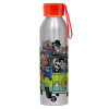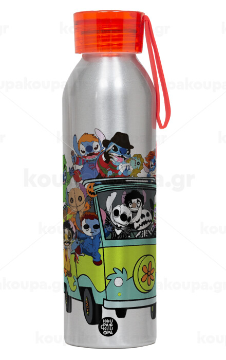 Stitch Halloween scooby car, Αλουμινένιο Αθλητικό Μπουκάλι 650ml – Ασημί με Κόκκινο Καπάκι και Λουράκι Σιλικόνης