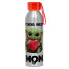 Yoda Best mom, Αλουμινένιο Αθλητικό Μπουκάλι 650ml – Ασημί με Κόκκινο Καπάκι και Λουράκι Σιλικόνης