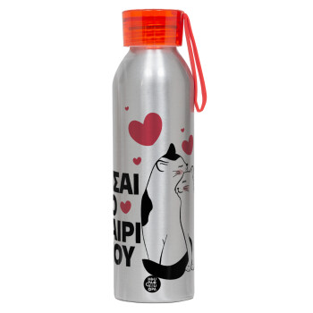 Είσαι το ταίρι μου, Αλουμινένιο Αθλητικό Μπουκάλι 650ml – Ασημί με Κόκκινο Καπάκι και Λουράκι Σιλικόνης