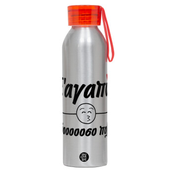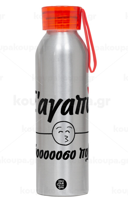 Σ΄ αγαπώ τόοοοοοσο πολύ!!!, Αλουμινένιο Αθλητικό Μπουκάλι 650ml – Ασημί με Κόκκινο Καπάκι και Λουράκι Σιλικόνης