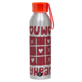 Τρίλιζα you won my heart, Αλουμινένιο Αθλητικό Μπουκάλι 650ml – Ασημί με Κόκκινο Καπάκι και Λουράκι Σιλικόνης