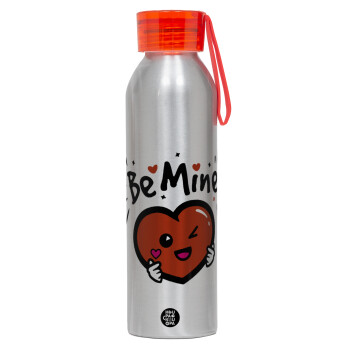 Be mine!, Αλουμινένιο Αθλητικό Μπουκάλι 650ml – Ασημί με Κόκκινο Καπάκι και Λουράκι Σιλικόνης