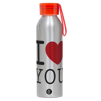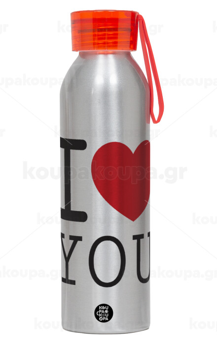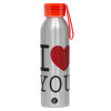 I Love you classic, Αλουμινένιο Αθλητικό Μπουκάλι 650ml – Ασημί με Κόκκινο Καπάκι και Λουράκι Σιλικόνης