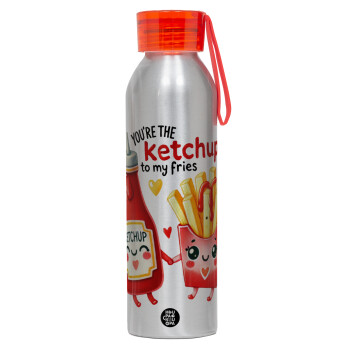 Ketchup To My Fries, Αλουμινένιο Αθλητικό Μπουκάλι 650ml – Ασημί με Κόκκινο Καπάκι και Λουράκι Σιλικόνης