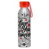 Love You Forever, Αλουμινένιο Αθλητικό Μπουκάλι 650ml – Ασημί με Κόκκινο Καπάκι και Λουράκι Σιλικόνης