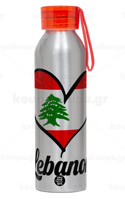 Lebanon flag, Αλουμινένιο Αθλητικό Μπουκάλι 650ml – Ασημί με Κόκκινο Καπάκι και Λουράκι Σιλικόνης