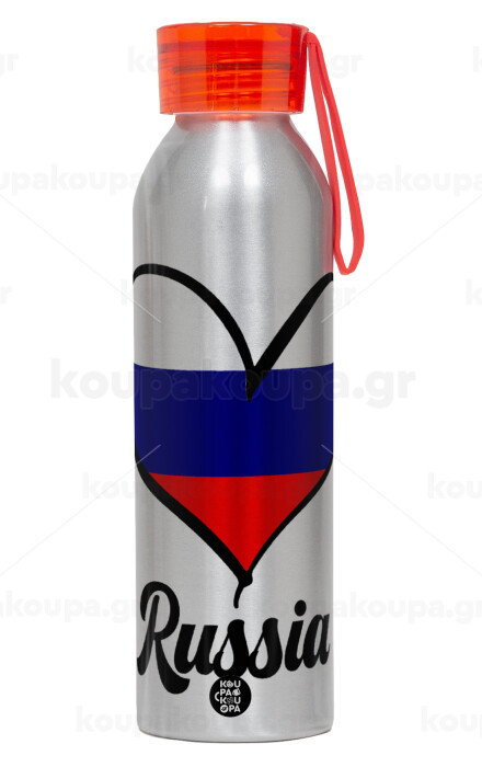 Russia flag, Αλουμινένιο Αθλητικό Μπουκάλι 650ml – Ασημί με Κόκκινο Καπάκι και Λουράκι Σιλικόνης