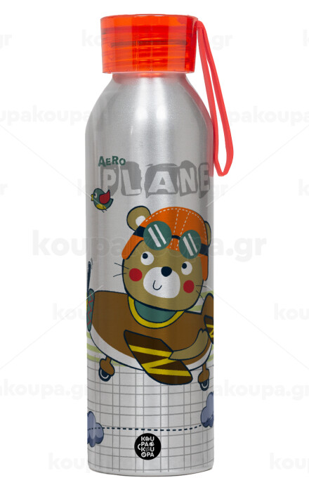 Ο μικρός αεροπόρος, Αλουμινένιο Αθλητικό Μπουκάλι 650ml – Ασημί με Κόκκινο Καπάκι και Λουράκι Σιλικόνης