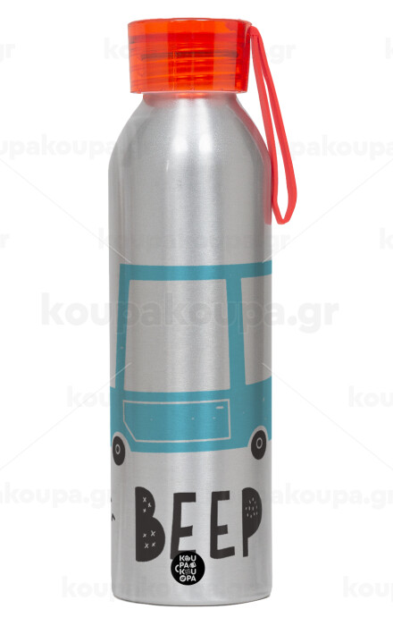 Car BEEP..., Αλουμινένιο Αθλητικό Μπουκάλι 650ml – Ασημί με Κόκκινο Καπάκι και Λουράκι Σιλικόνης