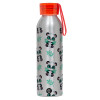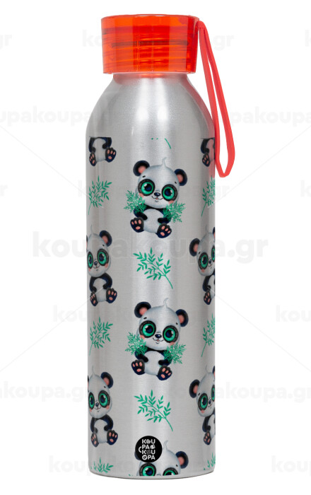Panda, Αλουμινένιο Αθλητικό Μπουκάλι 650ml – Ασημί με Κόκκινο Καπάκι και Λουράκι Σιλικόνης