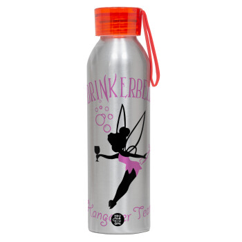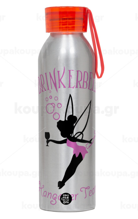 Drinkerbell bachellor, Αλουμινένιο Αθλητικό Μπουκάλι 650ml – Ασημί με Κόκκινο Καπάκι και Λουράκι Σιλικόνης