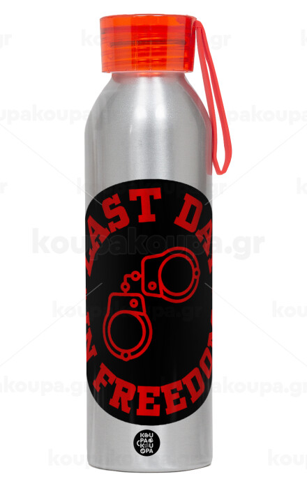 Last day in freedom, Αλουμινένιο Αθλητικό Μπουκάλι 650ml – Ασημί με Κόκκινο Καπάκι και Λουράκι Σιλικόνης