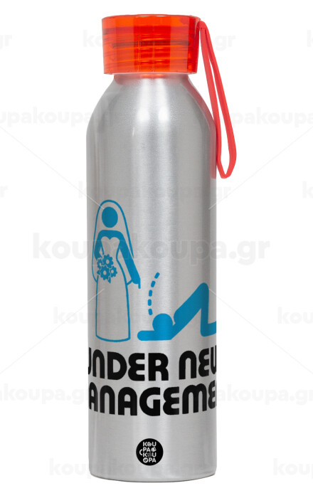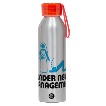 Under new Management, Αλουμινένιο Αθλητικό Μπουκάλι 650ml – Ασημί με Κόκκινο Καπάκι και Λουράκι Σιλικόνης