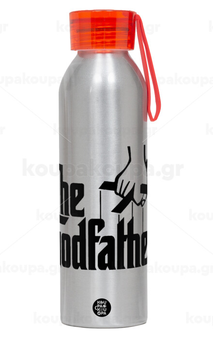 The Godfather, Αλουμινένιο Αθλητικό Μπουκάλι 650ml – Ασημί με Κόκκινο Καπάκι και Λουράκι Σιλικόνης