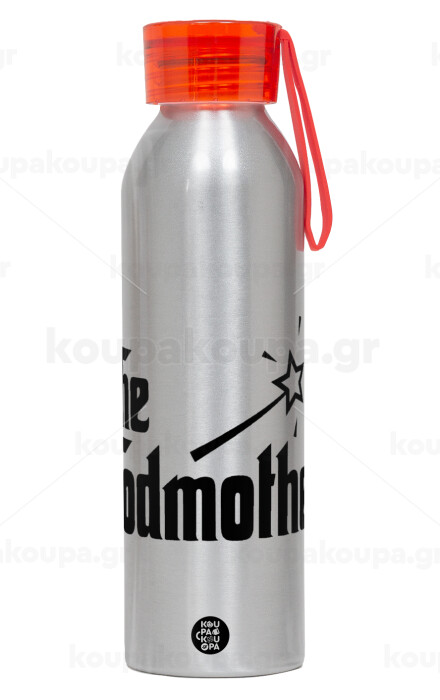 The Godmather, Αλουμινένιο Αθλητικό Μπουκάλι 650ml – Ασημί με Κόκκινο Καπάκι και Λουράκι Σιλικόνης