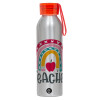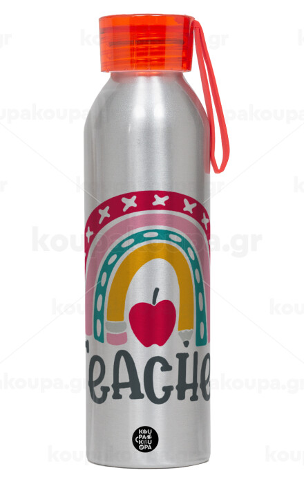 Rainbow teacher, Αλουμινένιο Αθλητικό Μπουκάλι 650ml – Ασημί με Κόκκινο Καπάκι και Λουράκι Σιλικόνης