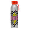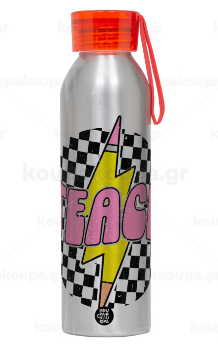 Teach, Αλουμινένιο Αθλητικό Μπουκάλι 650ml – Ασημί με Κόκκινο Καπάκι και Λουράκι Σιλικόνης