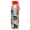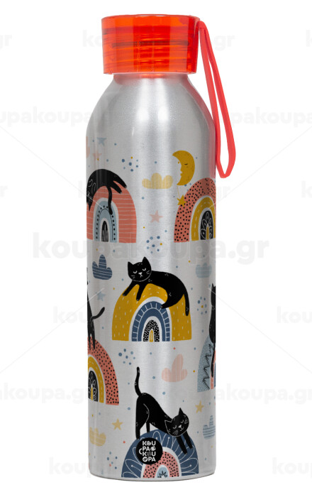 Γατούλες, Αλουμινένιο Αθλητικό Μπουκάλι 650ml – Ασημί με Κόκκινο Καπάκι και Λουράκι Σιλικόνης