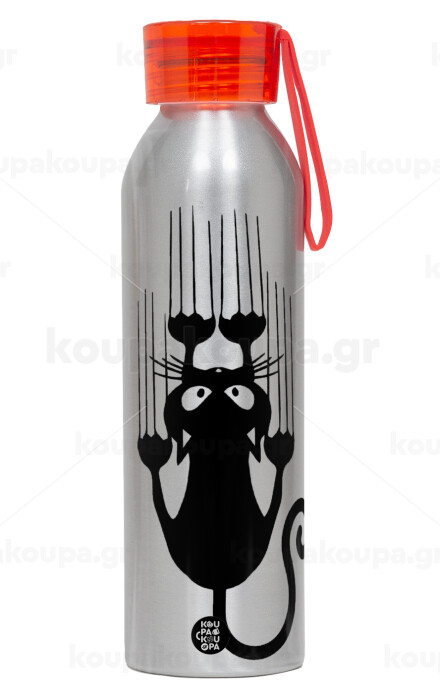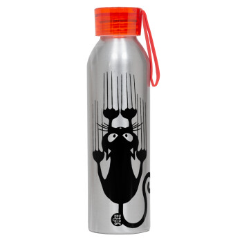 Cat scratching, Αλουμινένιο Αθλητικό Μπουκάλι 650ml – Ασημί με Κόκκινο Καπάκι και Λουράκι Σιλικόνης