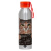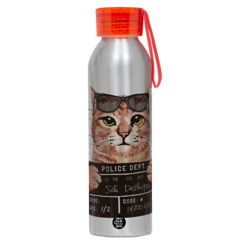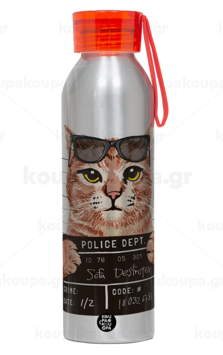 Cool cat, Αλουμινένιο Αθλητικό Μπουκάλι 650ml – Ασημί με Κόκκινο Καπάκι και Λουράκι Σιλικόνης