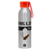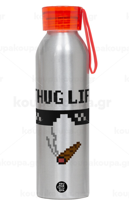 thug life, Αλουμινένιο Αθλητικό Μπουκάλι 650ml – Ασημί με Κόκκινο Καπάκι και Λουράκι Σιλικόνης