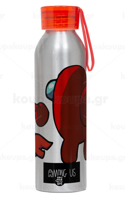 Among US i am impostor..., Αλουμινένιο Αθλητικό Μπουκάλι 650ml – Ασημί με Κόκκινο Καπάκι και Λουράκι Σιλικόνης