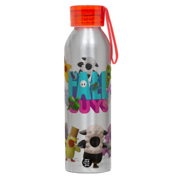 FALL GUYS, Αλουμινένιο Αθλητικό Μπουκάλι 650ml – Ασημί με Κόκκινο Καπάκι και Λουράκι Σιλικόνης
