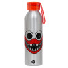 Huggy wuggy, Αλουμινένιο Αθλητικό Μπουκάλι 650ml – Ασημί με Κόκκινο Καπάκι και Λουράκι Σιλικόνης
