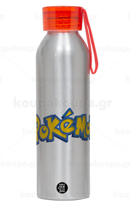 Pokemon, Αλουμινένιο Αθλητικό Μπουκάλι 650ml – Ασημί με Κόκκινο Καπάκι και Λουράκι Σιλικόνης