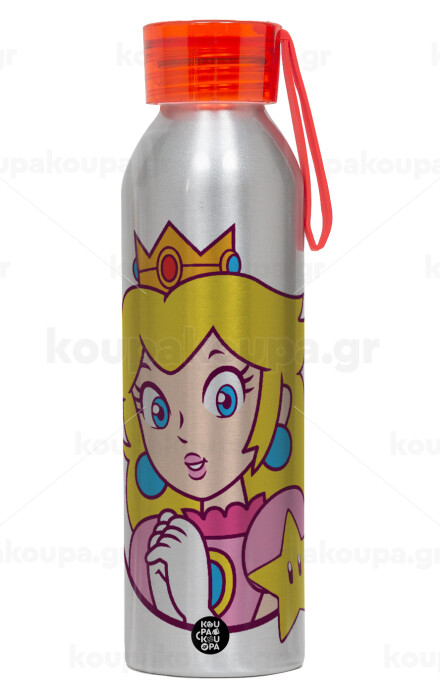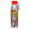 Princess Peach, Αλουμινένιο Αθλητικό Μπουκάλι 650ml – Ασημί με Κόκκινο Καπάκι και Λουράκι Σιλικόνης