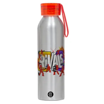 Roblox Rivals, Αλουμινένιο Αθλητικό Μπουκάλι 650ml – Ασημί με Κόκκινο Καπάκι και Λουράκι Σιλικόνης
