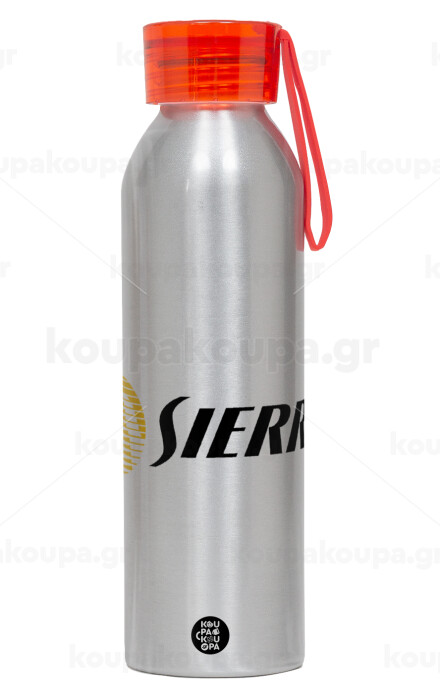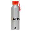 SIERRA, Αλουμινένιο Αθλητικό Μπουκάλι 650ml – Ασημί με Κόκκινο Καπάκι και Λουράκι Σιλικόνης