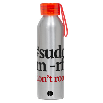 Sudo RM, Αλουμινένιο Αθλητικό Μπουκάλι 650ml – Ασημί με Κόκκινο Καπάκι και Λουράκι Σιλικόνης