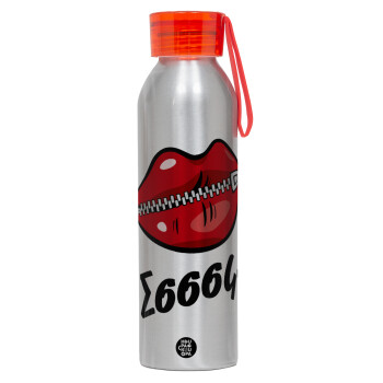 Σσσσς..., Αλουμινένιο Αθλητικό Μπουκάλι 650ml – Ασημί με Κόκκινο Καπάκι και Λουράκι Σιλικόνης