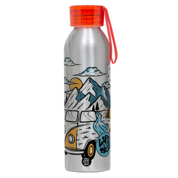 Life is a trip, Αλουμινένιο Αθλητικό Μπουκάλι 650ml – Ασημί με Κόκκινο Καπάκι και Λουράκι Σιλικόνης