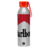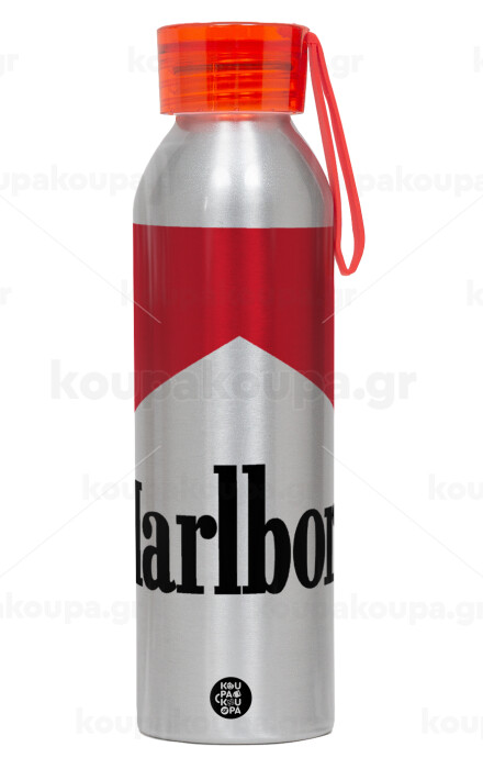 Marlboro, Αλουμινένιο Αθλητικό Μπουκάλι 650ml – Ασημί με Κόκκινο Καπάκι και Λουράκι Σιλικόνης