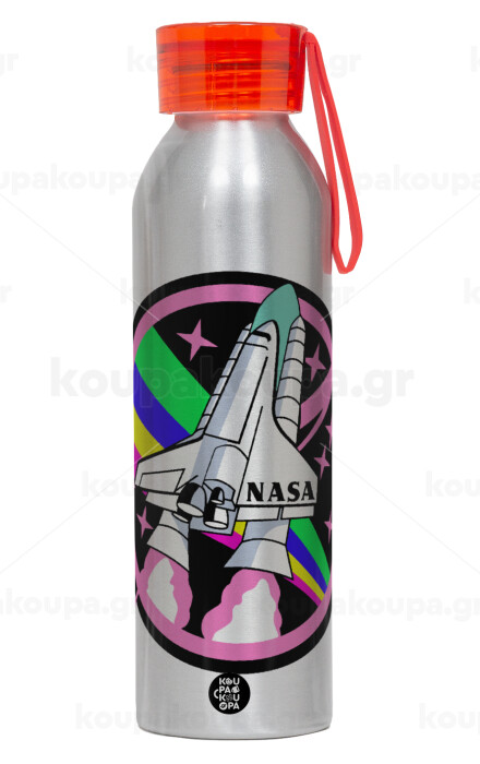 NASA pink, Αλουμινένιο Αθλητικό Μπουκάλι 650ml – Ασημί με Κόκκινο Καπάκι και Λουράκι Σιλικόνης