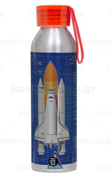 Nasa Space Shuttle, Αλουμινένιο Αθλητικό Μπουκάλι 650ml – Ασημί με Κόκκινο Καπάκι και Λουράκι Σιλικόνης