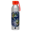 Planet Earth, Αλουμινένιο Αθλητικό Μπουκάλι 650ml – Ασημί με Κόκκινο Καπάκι και Λουράκι Σιλικόνης