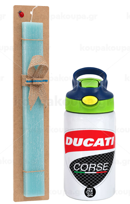 Ducati, Πασχαλινή Λαμπάδα με Παιδικό παγούρι θερμό, ανοξείδωτο, με καλαμάκι ασφαλείας, πράσινο/μπλε (350ml) & κερί αρωματικό πλακέ (30cm) (ΤΙΡΚΟΥΑΖ)