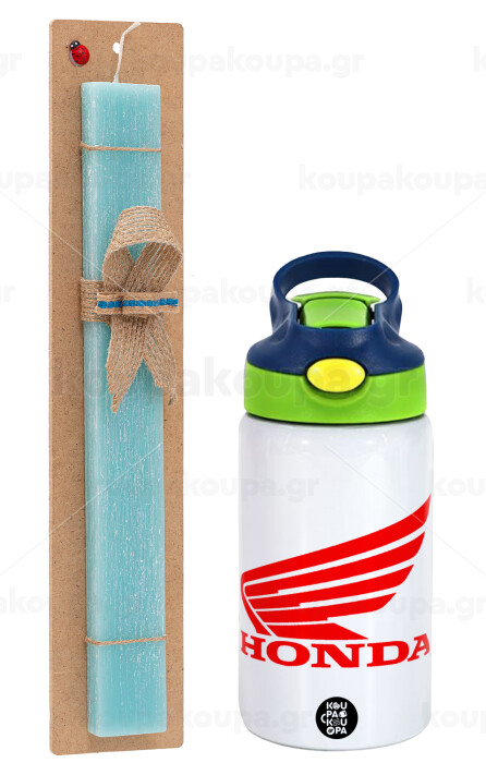Honda, Πασχαλινή Λαμπάδα με Παιδικό παγούρι θερμό, ανοξείδωτο, με καλαμάκι ασφαλείας, πράσινο/μπλε (350ml) & κερί αρωματικό πλακέ (30cm) (ΤΙΡΚΟΥΑΖ)