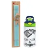 Dinner is coming (GOT), Πασχαλινή Λαμπάδα με Παιδικό παγούρι θερμό, ανοξείδωτο, με καλαμάκι ασφαλείας, πράσινο/μπλε (350ml) & κερί αρωματικό πλακέ (30cm) (ΤΙΡΚΟΥΑΖ)